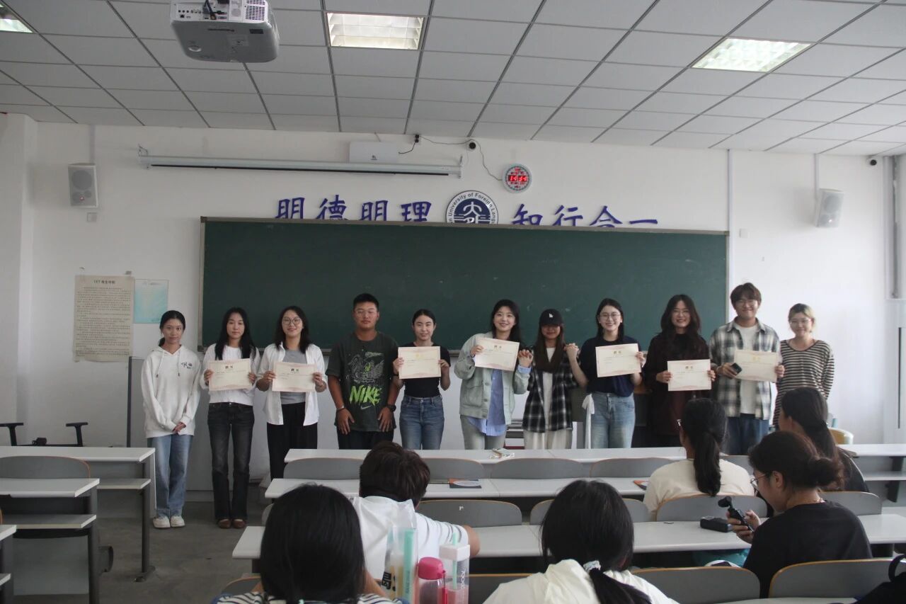 最后,2025级新生代表学院为班导生颁发聘书,感谢他们在初入大外时提供的帮助和指导,给予的温暖和关怀,是各位班导生让2025级新生顺利适应新环境,开启新生活。班导生们也表示,陪伴新生的这段时光,也是共同成长的美好经历,同学们洋溢的笑脸驱散了疲惫,信任的目光温暖的心房。虽然班导生的工作告一段落,但学长学姐的友谊会长存心间,未来会坚持做同学们的引路人和倾听者,祝愿大家未来四年的大学生活平安顺利,希望同学们在法语学院绽放自己独一无二的青春光彩。